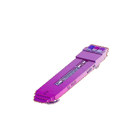 A vibrant pink Jadu AR hoverboard, inspired by Back to the Future, floats and rotates in a retro style.