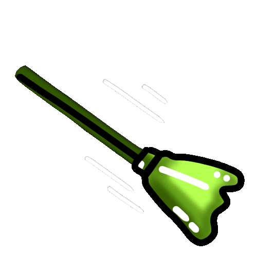 Jagyasini Singh's animated Halloween sticker features a vibrant green witch's broom flying across the screen.