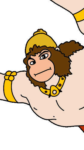 Jagyasini Singh's animated sticker of Hanuman, the monkey deity, depicted flying with a gentle smile.