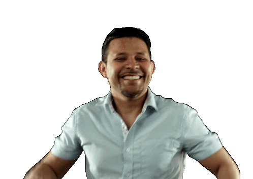 JLC Jaja, a man from El Salvador, laughs joyfully and points, expressing happiness and approval with a cheerful gesture.