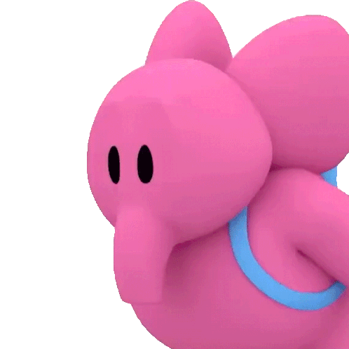 Elly, the pink elephant from Pocoyo, laughs heartily with a big smile, expressing joy and amusement.
