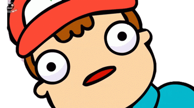 A happy Pokemon Trainer character laughs with a wide, open mouth, expressing joy and amusement.