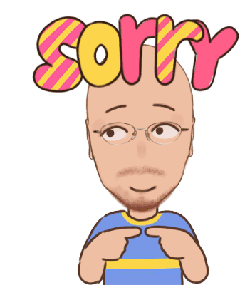 Jancokinaja, a bald cartoon man with glasses, points to himself apologetically, saying 'sorry'.