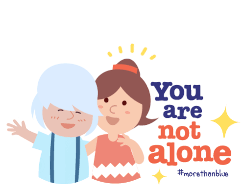 Janssenmorethanblue sticker featuring two animated characters embracing, conveying the comforting message 'You are not alone' for mental health support.