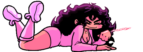Jasmine Ew from FNF, a baddie character, poses seductively in a pink outfit while holding a candy cane.