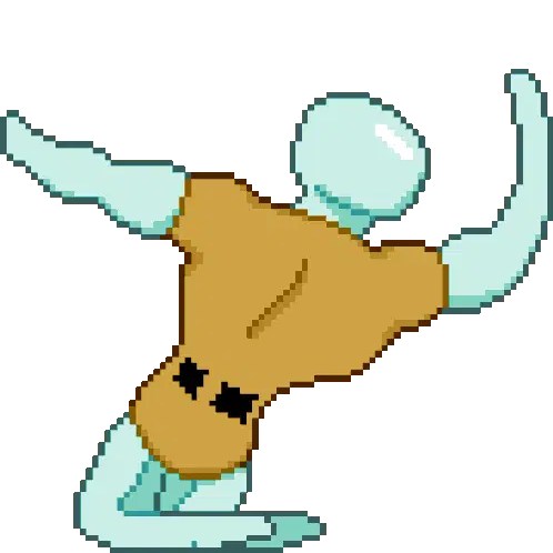 Jedi Pepe, a pixel art frog character, dances while holding blue and red lightsabers in this animated sticker.