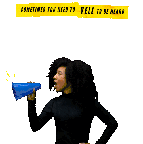 A person yells through a megaphone, advocating to 'SOLVE CHILD CARE' with the message 'SOMETIMES You need to YELL TO BE HEARD'. From Jefcaine.