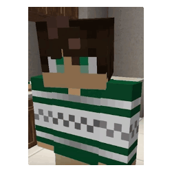 Aphmau and Jeffory, along with Aaron Lycan, are featured in this animated sticker of a Minecraft character wearing a green and white sweater.