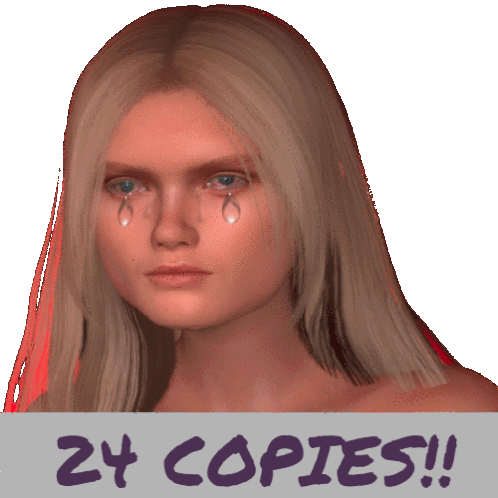 Jessica Summer with blonde hair and blue eyes, shedding tears, with '24 COPIES!!' text. An emotional and sad sticker.