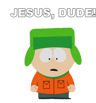 Kyle Broflovski from South Park reacts with surprise, exclaiming 'Jesus, Dude!' in this animated sticker.