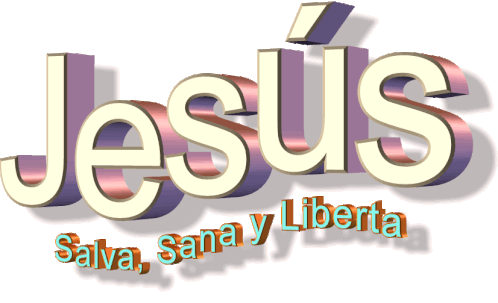 Animated sticker featuring the name Jesus with the powerful message 'Saves, Heals, and Frees' in Spanish.