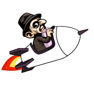 Jewwifhat character rides a white rocket with flames, heading 'To the Moon!' in this animated sticker.