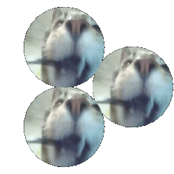 Three circular images of Jimmy the cat's face, specifically its nose and mouth, arranged on a white background, creating a playful sticker.