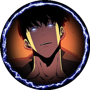 Sung Jin Woo from Solo Leveling with glowing blue eyes and a lightning aura, perfect for a profile picture.