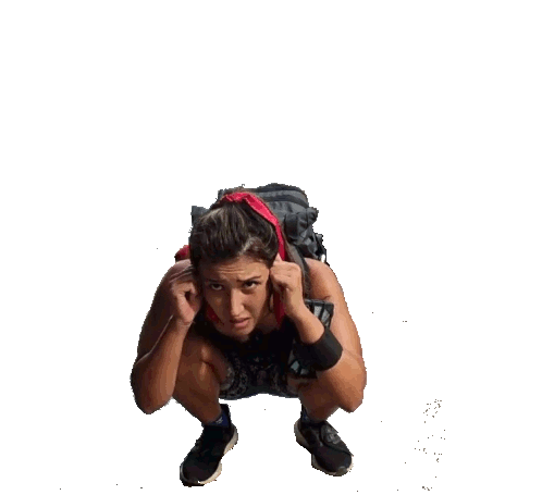 Justketh reacts with a scared expression, squatting and looking up, hands near her ears, possibly from a jump scare.