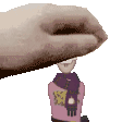 Jkcool's pixel art sticker from Rec Room featuring a hand gently holding a charming doll with a scarf.