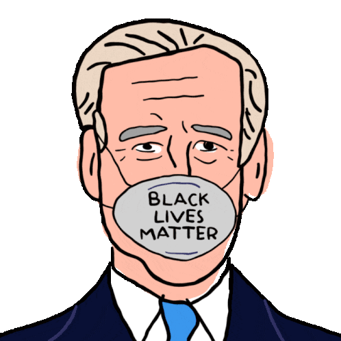 Joe Biden cartoon wearing a mask with changing messages like Black Lives Matter, Green New Deal, Equality Wins, and Go Vote.