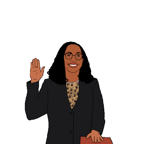 Animated sticker featuring Ketanji Brown Jackson, smiling and raising her hand as if taking an oath, symbolizing Black excellence and justice.
