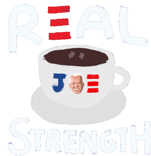 Joe Biden's 'Real Strength' coffee cup sticker, featuring the VP Biden and American flag colors.