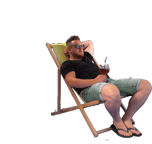 Joeri Van relaxing in a deck chair, enjoying a refreshing drink with a straw. Perfect for a chill vibe.