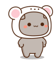 A cute cartoon cat character in a white bear-like hooded costume, with rosy cheeks and a smile, performing a joget dance.