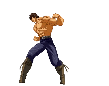 Kenshiro, from Jojo Nekohime, performs powerful pixel art martial arts moves, including punches and kicks.
