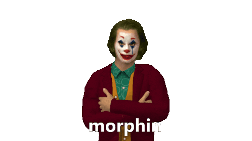 Joker (Joaquin Phoenix) reacts comically as a soccer ball hits his head, with the word "morphin" appearing.