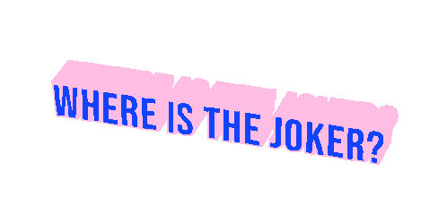 An animated text sticker displaying the question 'WHERE IS THE JOKER?' in blue letters with a pink 3D effect, wiggling on a white background.