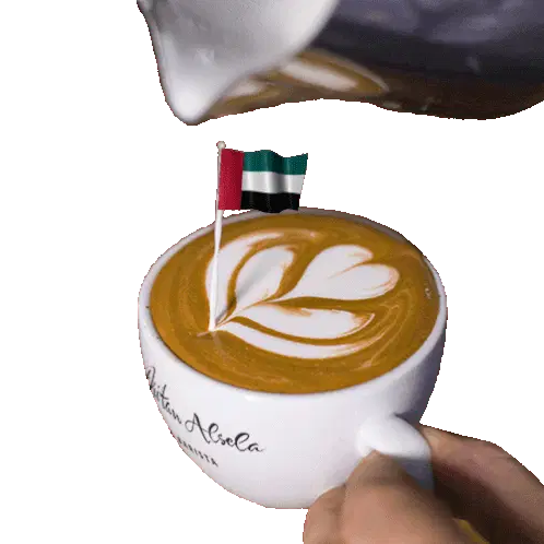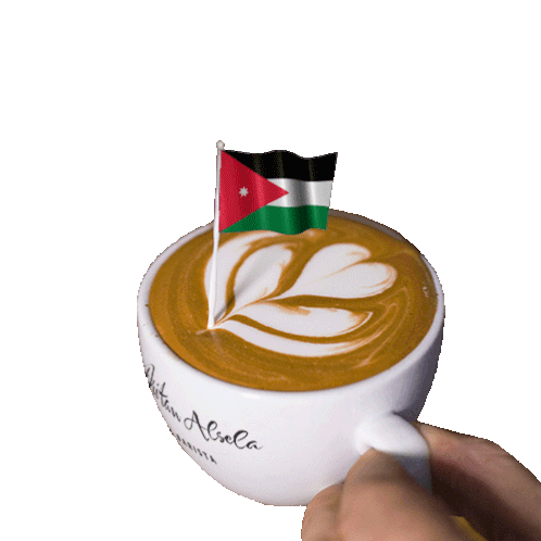 A cup of coffee with latte art and a Jordan flag, celebrating Jordan's independence by Dritan Alsela.