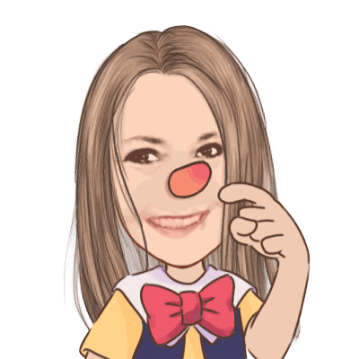 Joy Champ Joy Bird with a Pinocchio-like red nose, smiling and pointing at it, suggesting a lie.