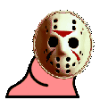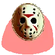 Jsonson Party Parrot, a pixelated character wearing a Jason Voorhees mask, shakes and dances in this animated sticker.