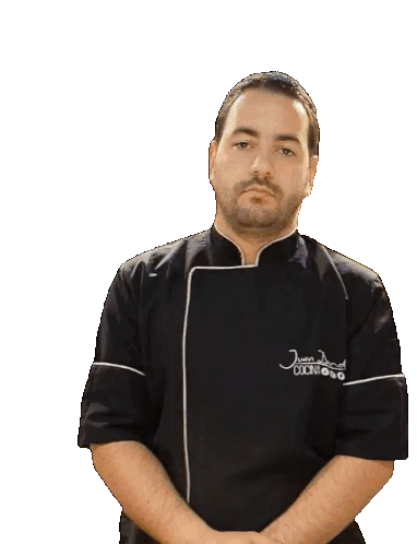 Juan David Cocina, the chef, shows surprise then disappointment, crossing his arms sadly.