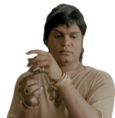 Sabi, portrayed by Bilal Baig, gives a discerning and judging look, adorned with intricate jewelry and bangles.