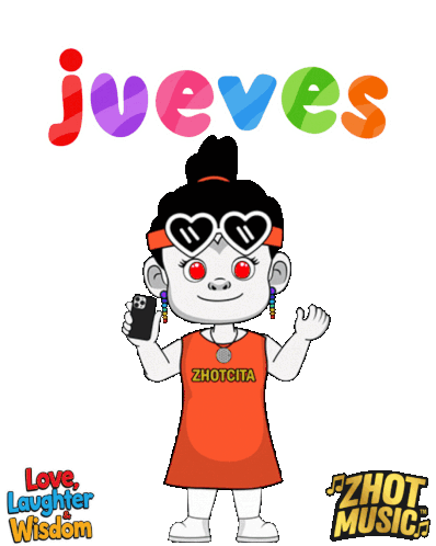 a cartoon of a girl holding a cell phone with the word jueves above her