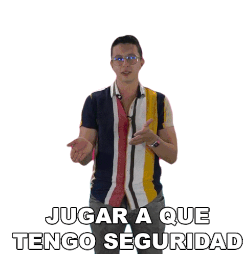 Juan C Platz gestures while saying 'Jugar A Que Tengo Seguridad' (Pretending I Have Confidence), conveying a sense of feigned assurance.