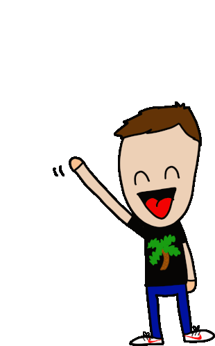 Julian Minka, a young man, waves cheerfully, greeting with a friendly 'hello' or 'bye bye' gesture.