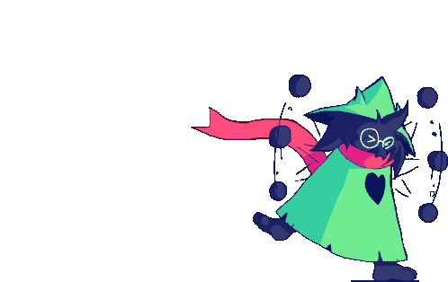 Ralsei, the goat prince from Deltarune, jumps enthusiastically with joy, celebrating with happy hops and raised arms.