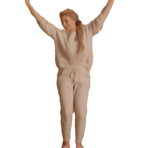 Tori Kelly expresses pure happiness, jumping for joy with arms raised in an energetic and cheerful dance.