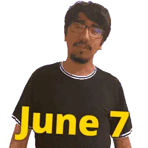 a man wearing glasses and a black shirt with the words june 3 on it