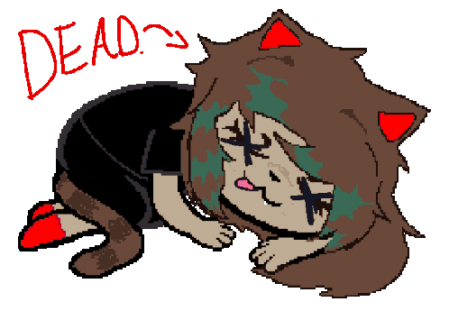 Juney from Homestuck, a pixel art black cat, lies still with the word 'DEAD' above it, a humorous sticker.