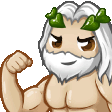 Jupi Jupiter, a muscular, bearded man with a leafy wreath, proudly flexes his bicep in this animated sticker.