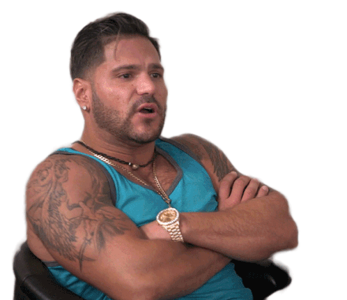 Ronald Ortiz Magro from Jersey Shore, arms crossed, saying 'Just Let It Go, Move On' with a dismissive expression.