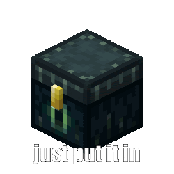 a black minecraft block with the words just put it in written on it
