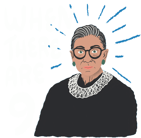 An animated sticker featuring an iconic illustration of Justice Ruth Bader Ginsburg, a Supreme Court Justice, also referencing Justice Stephen Breyer.