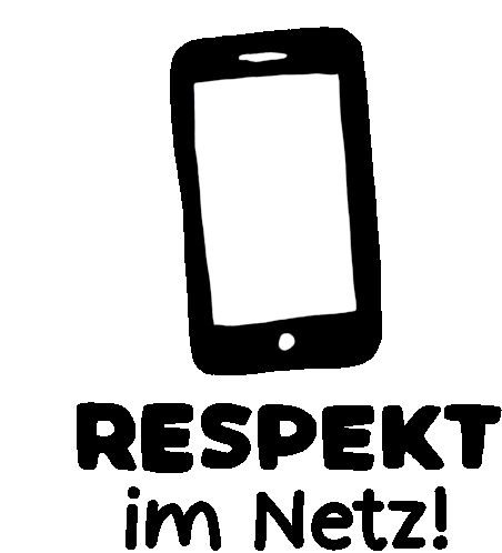 Animated sticker showing a smartphone with hearts and a speech bubble, promoting respect online with the text 'RESPEKT im Netz!'.