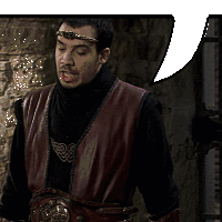 Arthur from Kaamelott, wearing a headband and leather vest, stands with an empty speech bubble.