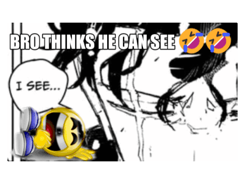 a yellow smiley face with a speech bubble that says " brothinks he can see "
