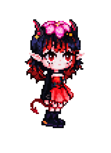 a pixel art drawing of a girl with horns and red hair