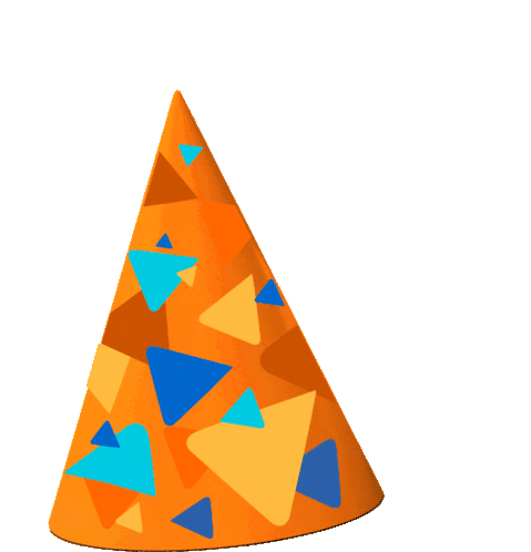 Animated orange Kaizen birthday hat adorned with blue and yellow triangles, perfect for celebrations.