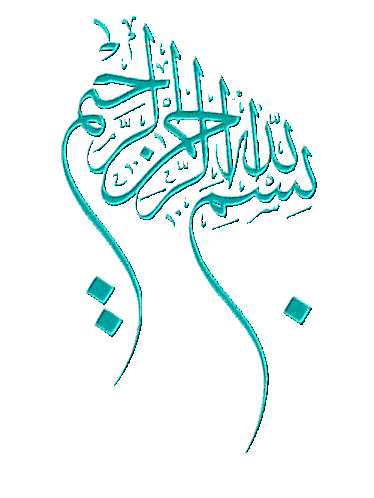 An elegant animated sticker featuring the Basmalah (Bismillah) in red and black Arabic calligraphy, shimmering with light.